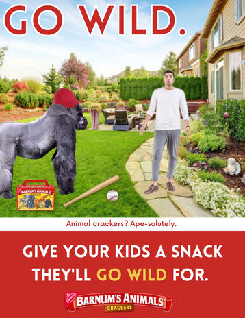 This campaign was created for Barnum's Animals Crackers. The big idea here is that children will literally "go wild" for this classic snack. Though my design skills are not extraordinary, I had a good deal of fun putting together these graphics and tying it all together with light-hearted, effective copy.